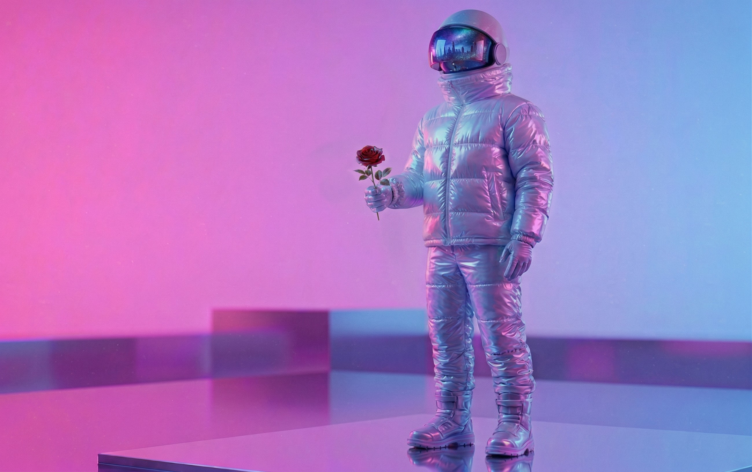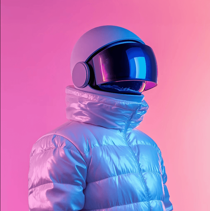 The imagery blends futuristic characters, reflective materials, and symbolic tech‑driven objects within neon‑cosmic environments. Bold glow, gradients, and atmospheric haze shape each scene, creating a cinematic fusion of human presence and advanced technology. The result is a cohesive visual universe that feels intimate, energetic, and otherworldly.